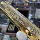 Корпус пистолета покрыт слоем никеля, а затем – позолотой высшей пробы (10 мкм), создавая эффект роскоши и благородства. Особое внимание уделено ручной гравировке, выполненной с невероятной детализацией. В комплекте вы получите не только пистолет, но и деревянный футляр, выполненный из ценных пород дерева, а также 20 холостых патронов - символы величия и силы.